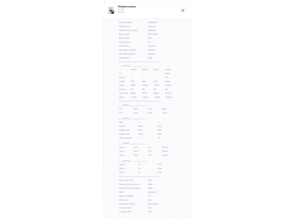 - Čtení dat ze střídače s periodou až 5 sekund