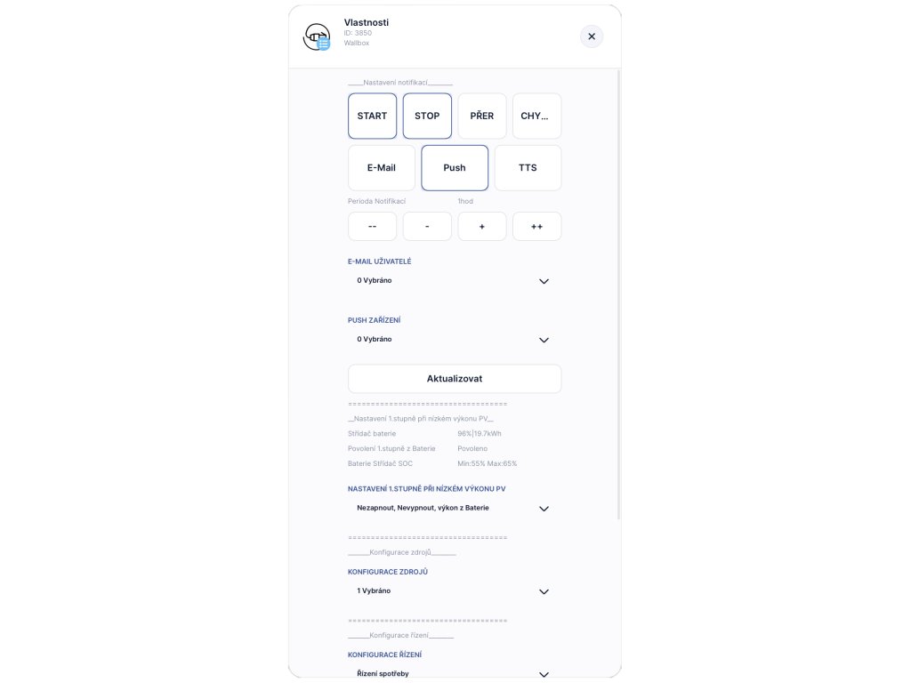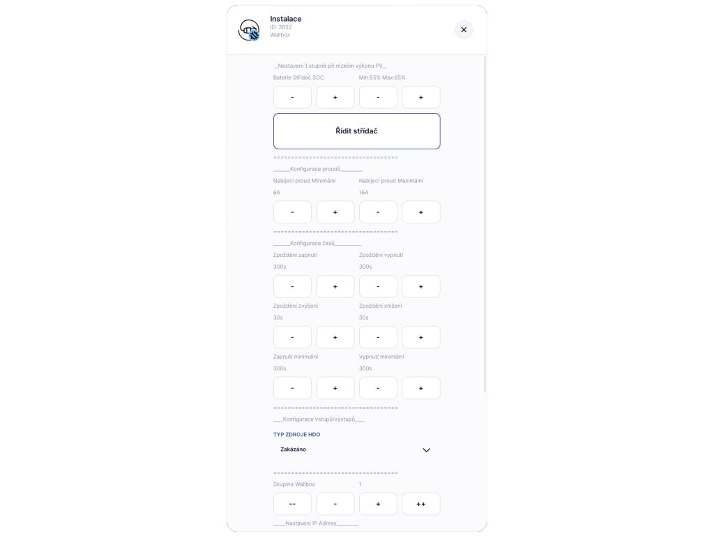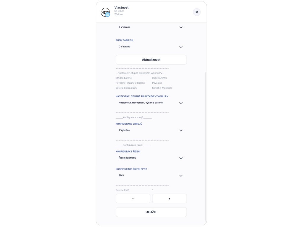 Klíčové vlastnosti: čtení a ovládání wallboxu, možnost jako součást využití přebytků nebo spotové řízení