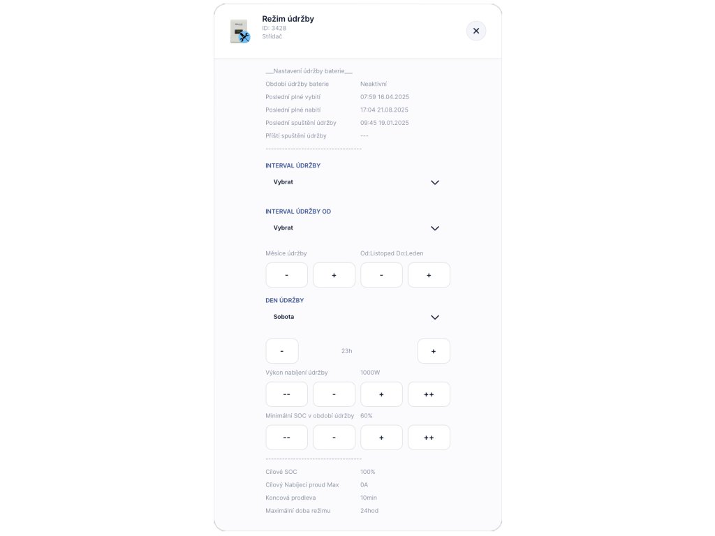 Součástí aplikace je režim údržby baterie – inteligentní funkce, která automaticky optimalizuje stav baterie a prodlužuje její životnost i během zimních měsíců.