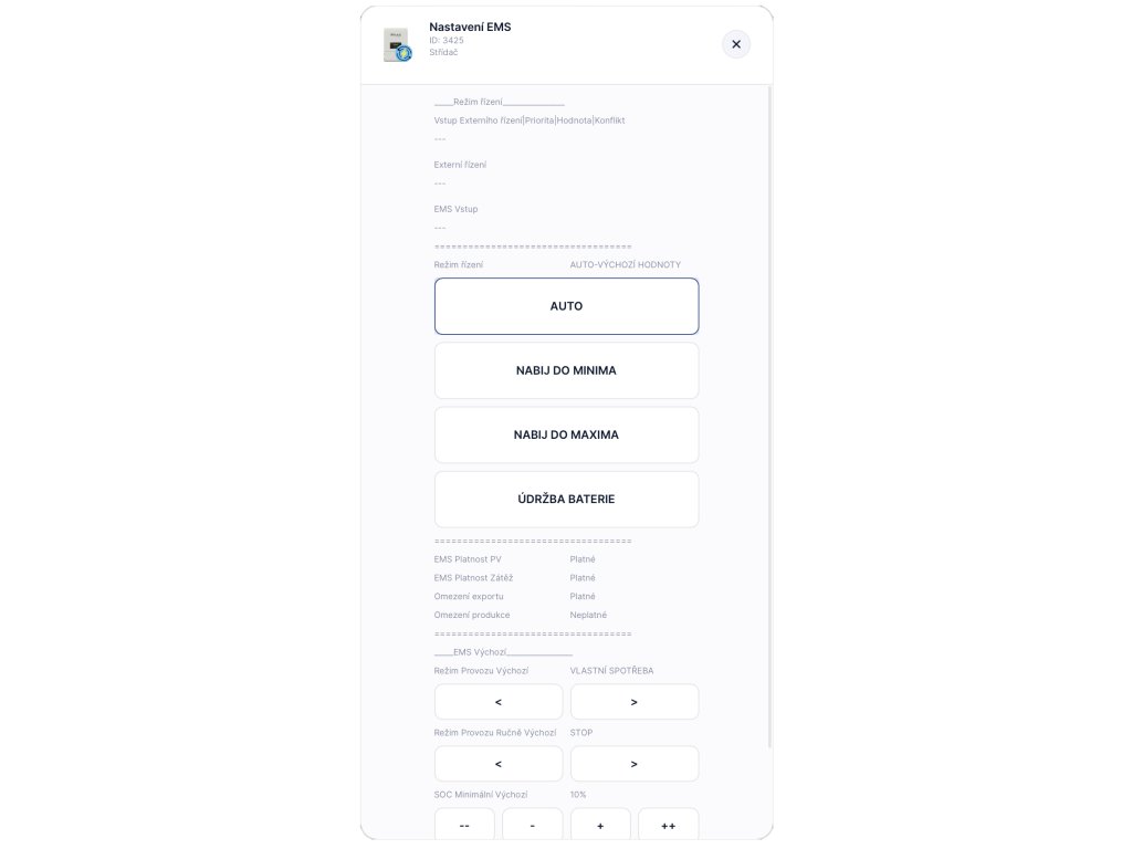 Nabízí praktické funkce pro domácnosti i firmy – od vizualizace dat v reálném čase, přes ruční nastavení, až po napojení na pokročilé energetické strategie (např. SPOT, přítomnost, přetoky).