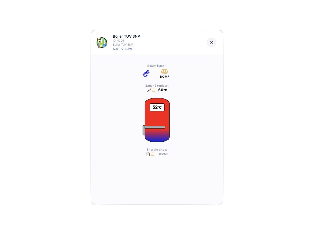 QA Bojler TUV je aplikace pro řízení ohřevu teplé vody v zásobnících pomocí elektrických topných těles. Umožňuje úsporný a komfortní ohřev pomocí nutného ohřevu, využití přebytků fotovoltaiky nebo spotového řízení dle aktuálních cen elektřiny.