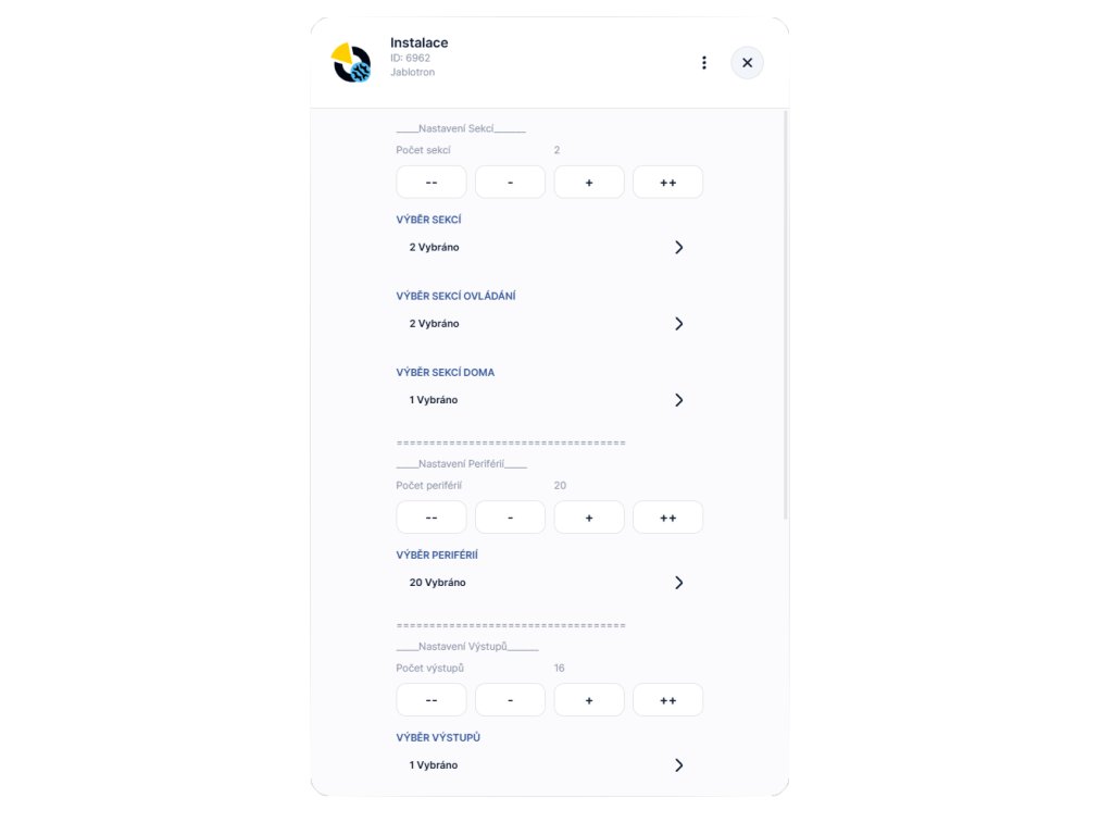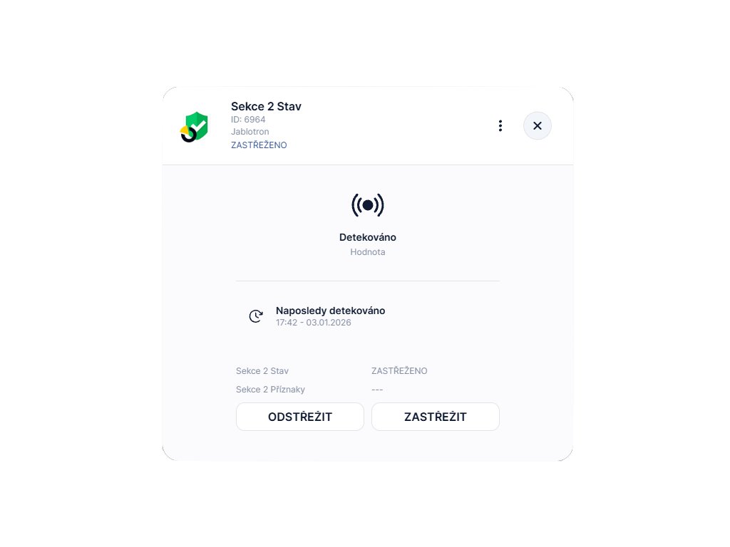 - ✅ Ovládání zón: Možnost zastřežování a odstřežování sekcí.