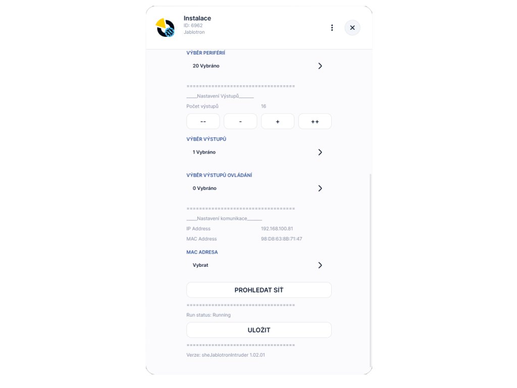 - Nainstalovaná aplikace QA Jablotron s nastavenou TCP komunikací.