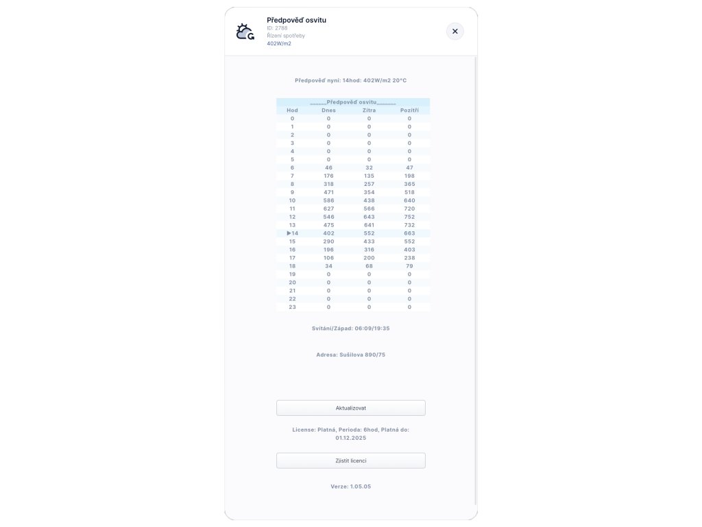 Import hodnot predikce osvitu ze služby PV Forecast.