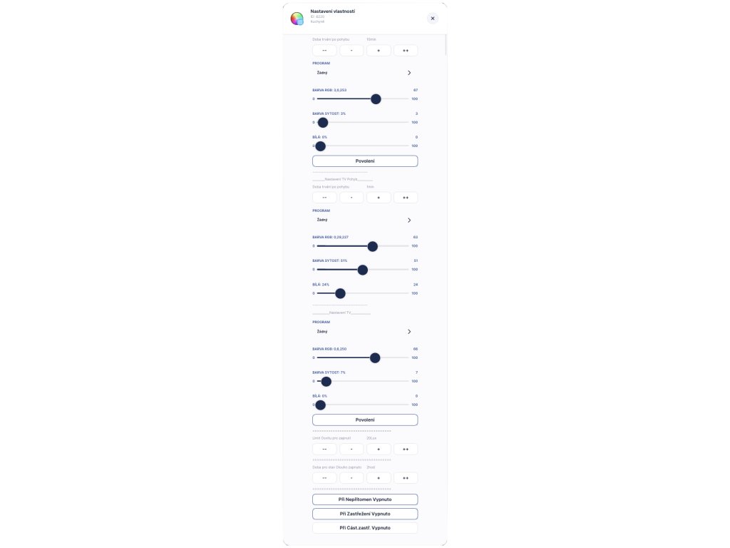 - Spolupráce s globálními profily: Dům v režimu "Spánek" upraví chování RGBW pásků na orientační osvětlení