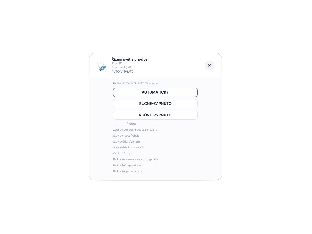 - Senzory pohybu a osvitu (Lux) v dané zóně
