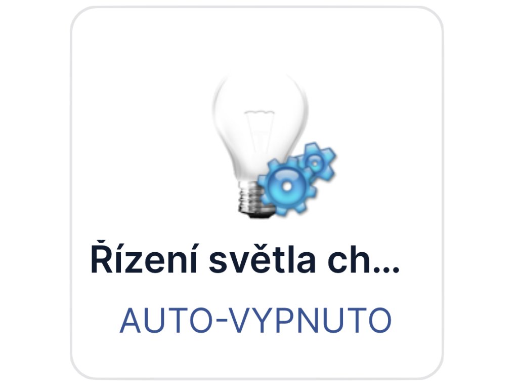 | ? Vyžadované zdroje dat: | Stmívače, Senzory pohybu, Lux, Dveře |