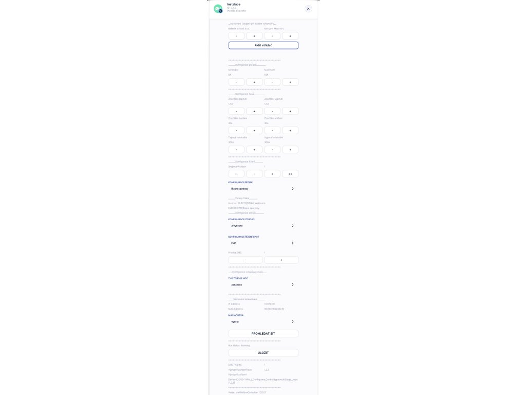 - Konfigurace minimálního a maximálního SOC baterie pro zachování energie pro domácnost.